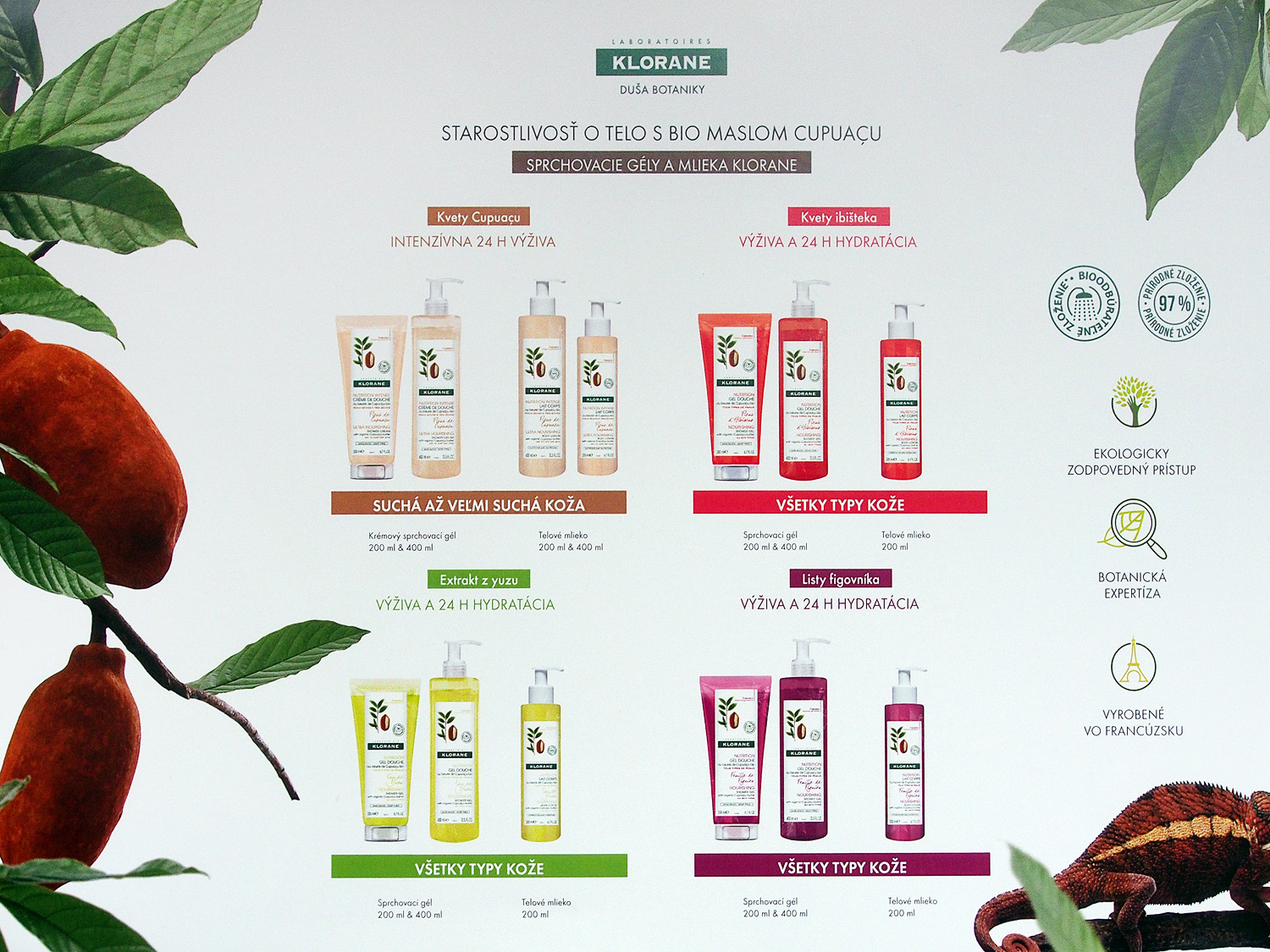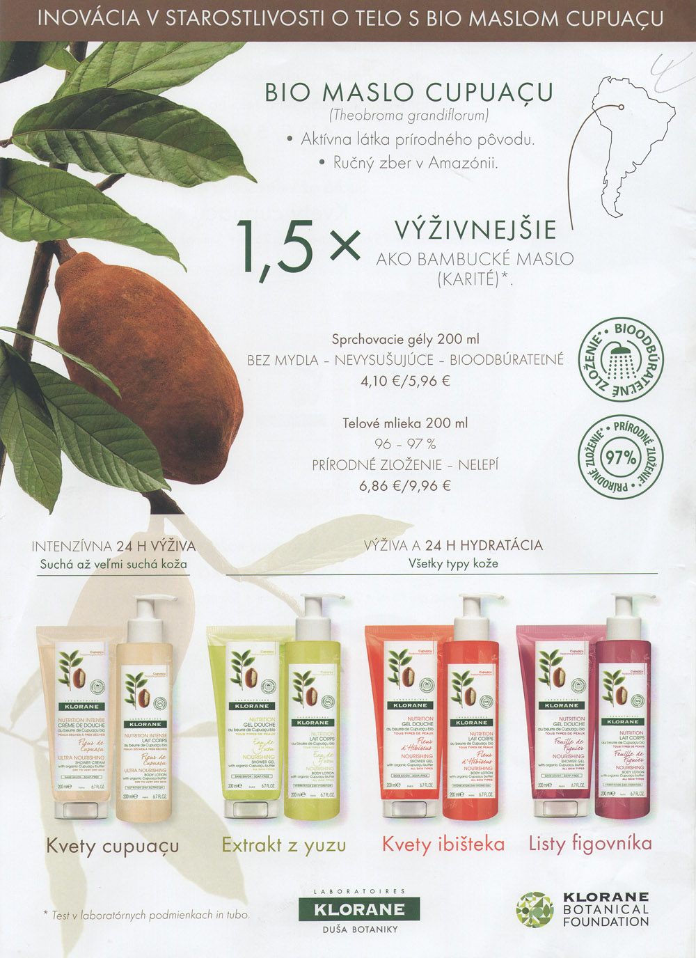 Z dielne Klorane Vám zároveň dávame do pozornosti starostlivosť o telo s bio maslom Cupuaçu s preukázanými blahodárnymi vlastnosťami pre všetky typy kože.