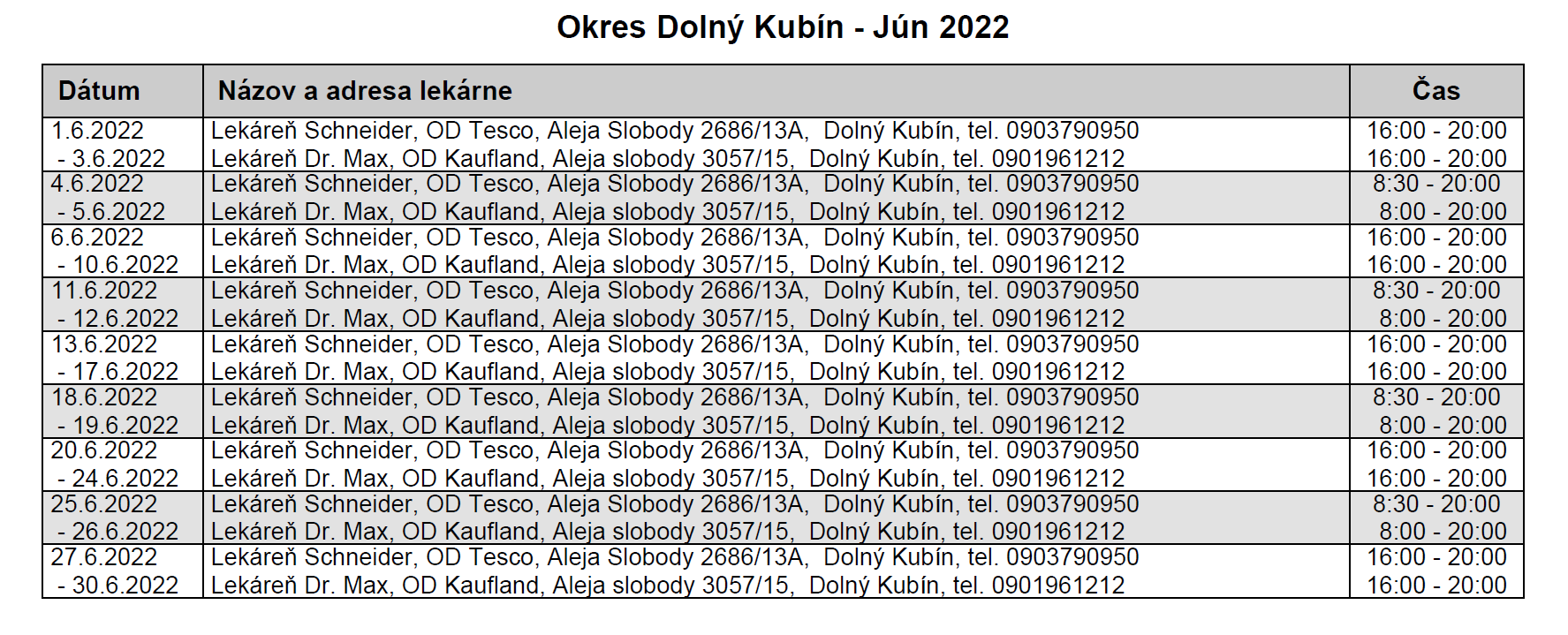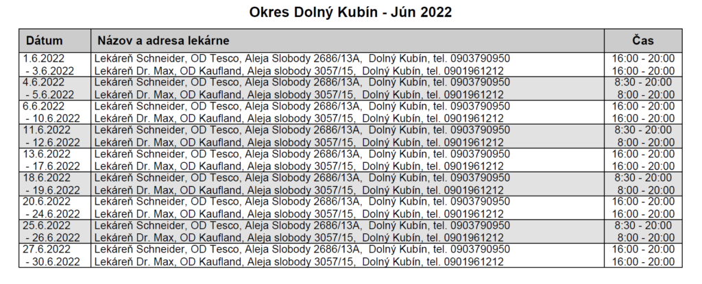 Rozpis zabezpečenia poskytovania lekárenskej pohotovostnej služby a lekární, ktoré zabezpečujú najdlhšie lekárnickú starostlivosť v rámci svojich prevádzkových hodín
