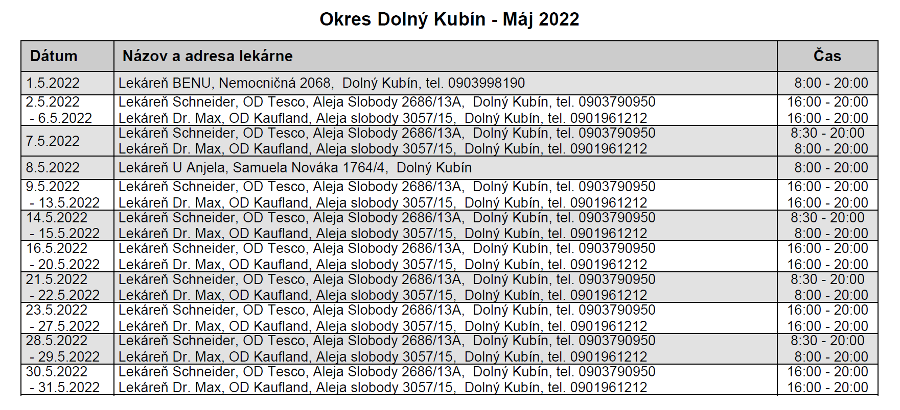 Okres Dolný Kubín – Máj 2022
