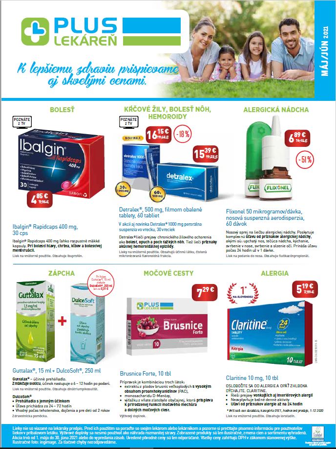 AkcieVážení zákazníci s potešením Vám odporúčame nasledovné akciové ponuky: V súčasnej mimoriadnej pandemickej situácii spôsobenej Koronavírusom (COVID-19, 2019-nCoV) Vám prinášame 2019-nCoV IgG/IgM rýchlo-testy na detekciu protilátok prítomných pri ochorení COVID-19. NOVINKA: Zároveň Vám dávame do pozornosti aj možnosť nákupu respiratorov FFP2 priamo v našej lekárni. Neváhajte a pozrite si katalógy produktov privátnej značky PLUS LEKÁREŇ, obsahujúce sortiment, ktorý nakupujete najčastejšie a to za výhodné ceny! Pre zdravé nožičky Vašich detičiek máme pre Vás pripravené zdravotné topánočky a papučky značky PROTETIKA, BAREFOOT a FARE od čísla 18 po číslo 30. Vyššie čísla topánočiek Vám radi objednáme. ![]() Značka PROTETIKA prináša širokú ponuku detskej obuvi z čisto prírodných materiálov a s prvkami, ktoré sú prevenciou pre zdravý vývoj detských nôh. PROTETIKA má pre deti v portfóliu obuv na všetky príležitosti – od vychádzkových topánočiek a sandáliek, cez športovú obuv a gumáčiky, až po plátenky a prezuvky. ![]() Naše chodidlá majú od narodenia všetky technológie, ktoré potrebujeme pre náš prirodzený pohyb. BAREFOOT topánočky umožňujú chodidlám prirodzene pracovať tak, akoby boli naboso a pohybovať sa tak, ako to príroda chcela. Majú nulový sklon podrážky medzi špičkou a pätou a predná časť topánky je navrhnutá v anatomickom tvare chodidla. Umožňujú tak prirodzené rozvinutie chodidla aj klenby nohy pri došľape a ich opätovné zmrštenie pri odraze. Vaše chodidlá tak neustále prirodzene pracujú. ![]() Detské topánočky FARE patrí medzi najpredávanejšie topánky pre deti. Sú odporúčané mamičkami aj odborníkmi pre ich vysokú kvalitu a skvelé funkčné vlastnosti. V našej ponuke nájdete detské topánočky pre všetky ročné obdobia. Pripravte sa na príchod slnečných dní s opaľovacími prípravkami AVENE. Máme pre Vás pripravenú zľavu 6€. Nádej pre lepší život s atopiou a svrbením Vám prinášajú produkty Avène upokojujúcej koncentrovanej starostlivosti XeraCalm A.D určené pre suchú, atopickú pokožku dojčiat, detí aj dospelých. Pozrite si novú generáciu obnovujúcej a ochrannej starostlivosti Cicalfate, pre celú rodinu z dielne Avène s vyššou účinnosťou pre okamžité upokojenie podráždenej a poškodenej kože. Prinášame Vám inovatívnu starostlivosť o pleť so sklonom k akné z produkcie Avène, Cleanance Comedomed, poskytujúcu viditeľné výsledky už po 7 dňoch, s novou patentovanou látkou Comedoclastin. Dávame Vám do pozornosti novinky Avène radu Hydrance, nekonečný zdroj hydratácie pre citlivú pleť s inovovaným prístupom k hydratácii. Upokojenie z prírody od Avène Vám prináša revolučnú starostlivosť Cleanance s riešením pre každý typ AKNÉ v 3 krokoch! Základná starostlivosť Avène pre pleť žiariacu krásou každý deň, s produktami za priaznivé ceny pre všetky druhy pleti. Odporúčame Vám upokojenie z prírody od Avène. Revolučná starostlivosť DermAbsolu o zrelú pleť s novým prístupom k procesom starnutia kože, zameraným na prejavy starnutia v 3 úrovniach za skvelé akciové ceny! Neprehliadnite novinku tónovanej hydratačnej starostlivosti Avène pre upokojenie a 24h hydratáciu pleti. Aj vo svojej krehkej koži sa môžete cítiť lepšie s produktami A-Derma zameranými na preventívnu starostlivosť o podráždenú a narušenú pokožku, pre všetkých – od dojčiat po seniorov. Z dielne Klorane Vám zároveň dávame do pozornosti starostlivosť o telo s bio maslom Cupuaçu s preukázanými blahodárnymi vlastnosťami pre všetky typy kože. Pozrite si aj novinku z produkcie Klorane s čistiacou silu mäty vodnej pre detox vlasov a vlasovej pokožky vhodnou pre prírodné, melírované alebo farbené vlasy. Drahé mamičky, odporúčame Vám prírodnú starostlivosť pre bábätká z dielne Klorane Bébé teraz aj vo výhodných DUO baleniach s jemným umývacím krémom a jemnými čistiacimi obrúskami za mimoriadne priaznivé ceny so zľavou -50 % na 2. gél a zľavou -70 % na 2. obrúsky! Neprehliadnite tiež jedinečnú 50% ZĽAVU na 2. šampón Ducray pôsobiaci proti reakčnému a chronickému vypadávaniu vlasov v balení DUO ANAPHASE+. Leto strieda jeseň a s ňou aj typické počasie. S ním sa ako bumerang vracia aj obdobie jesenných chrípok a chrípke podobných ochorení. Ak však máme po ruke dobre vybavenú homeopatickú „protichrípkovú“ lekárničku, nemusíme sa každoročných jesenných zdravotných komplikácií obávať. Prinášame Vám novinku Eucerin, hyalurónovú masku pre intenzívnu hydratáciu redukujúcu jemné vrásky do 5 min.